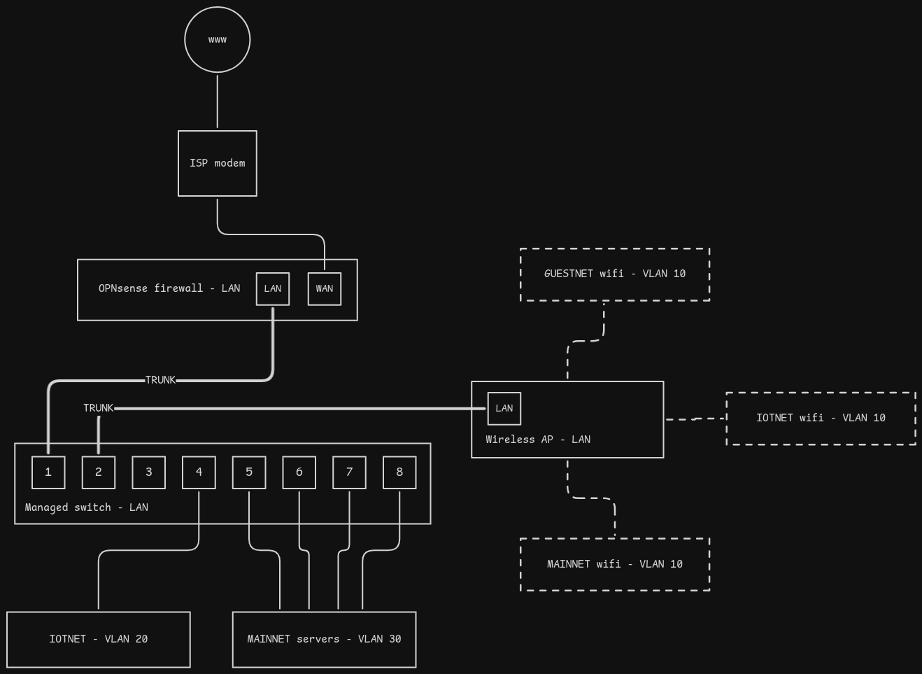 - VLAN tag 30 - subnet 192.168.30.0/24 - mainnet.