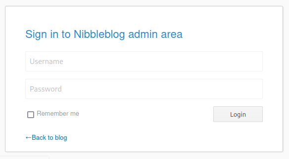 Let’s run gobuster dir -u http://10.129.200.170/nibbleblog/ -w common.txt supplied with a common.txt wordlist (from SecLists) for the sake of speed. The results reveal there is an admin subdirectory as well as an admin.php login page.
